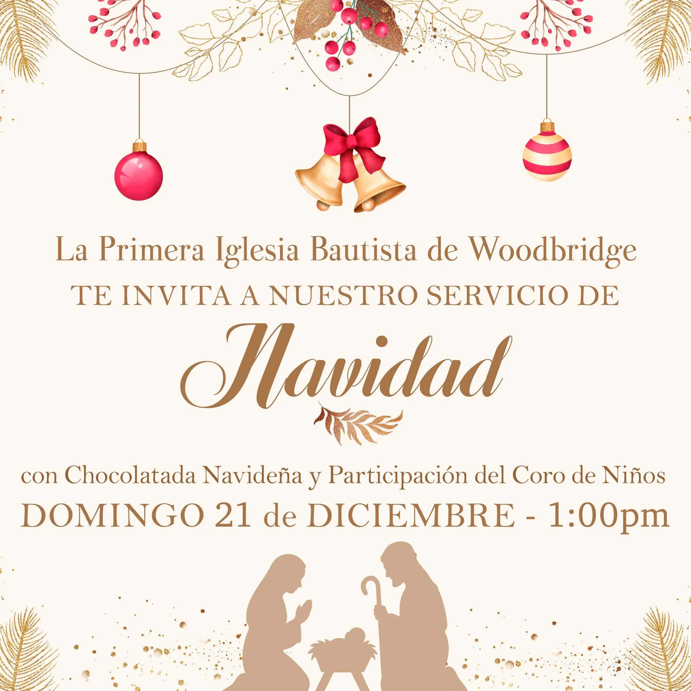 ¡La Primera Iglesia Bautista de Woodbridge te invita a nuestro Servicio de Navidad!